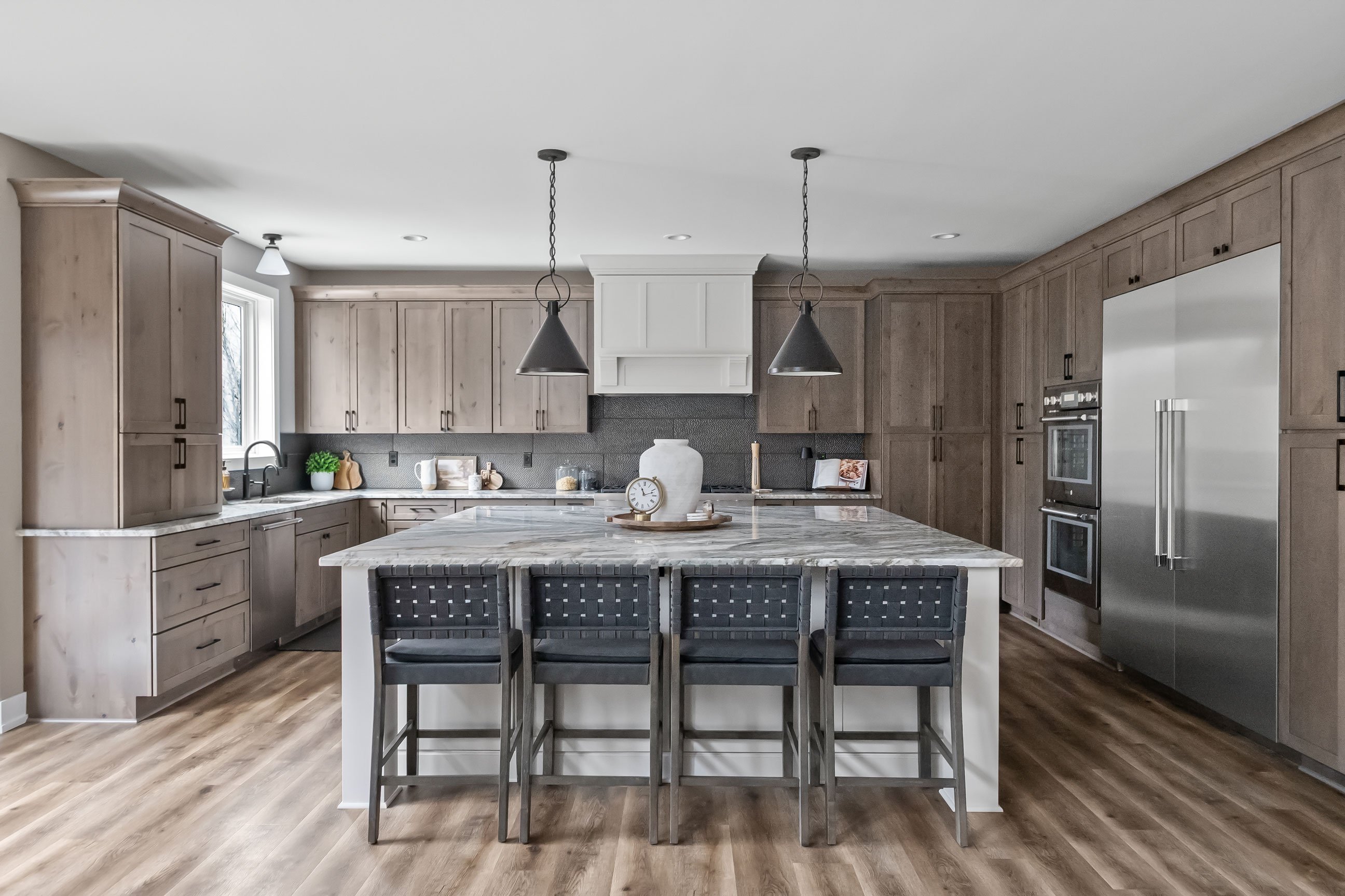 One of the first things the homeowners told me was how much they love hosting. We began our design journey with the heart of the home: a large, inviting kitchen anchored by a generous island. With seating for four and plenty of room for food prep and casual meals, this island truly serves as the gathering point. Whether making morning coffee or setting out appetizers, the space encourages connection.